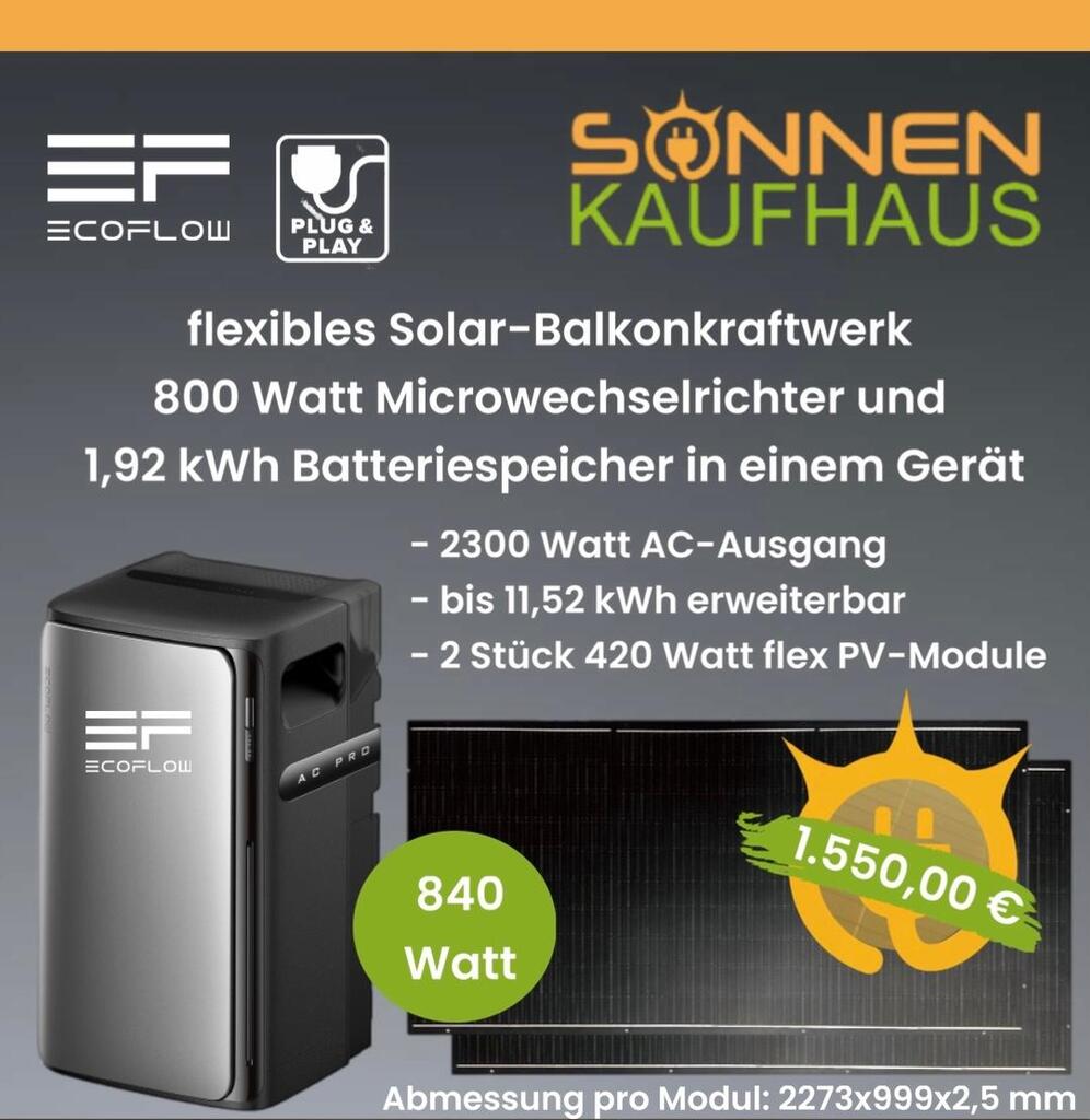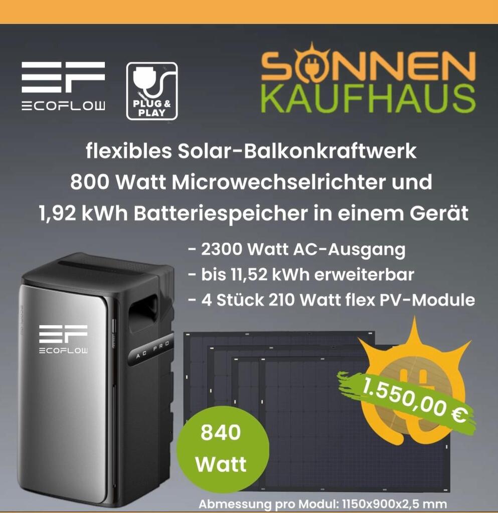 - Solar Balkonkraftwerk mit Speicher, Solaranlage mit Batterie, autarkes Balkonkraftwerk